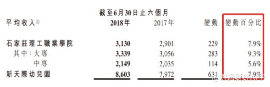 在平均收入上,2018年上半年,该公司高等教育及幼儿教育板块都有不同程度的上涨,其中大专平均收入实现增长9.3%,中专实现增长为5.6%,幼儿园教育实现增长为7.9%。