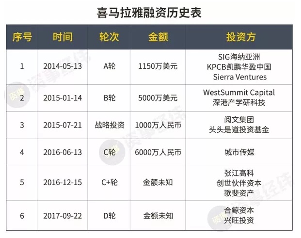 与喜马拉雅FM的行业地位相比,其市场声量一直都不是很大。事实上,喜马拉雅FM堪称资本界“宠儿”。据资事君(ID:zishijw)不完全统计,2014年至今,喜马拉雅FM已完成6轮融资,融资总额近10亿元人民币(见下图)。耐人寻味的是,在最新这轮融资中,第一次出现了腾讯,或意味着腾讯正式将商业触角伸向音频领域。虽然尚不清楚具体投资金额,但在“站队BAT”的时代,一旦被巨头盯上,喜马拉雅FM再想独善其身,恐怕不会太容易。