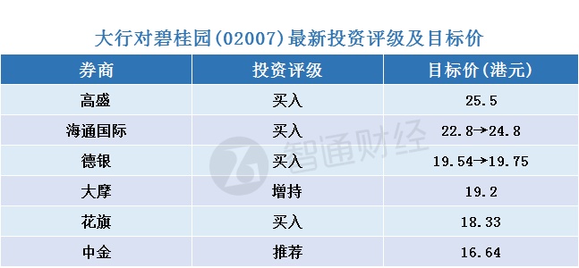 智通财经APP整理,大行对碧桂园(02007)最新投资评级及目标价如下: