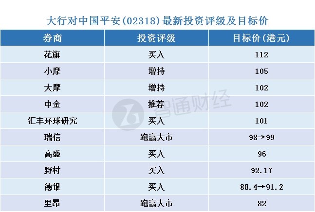 智通财经APP整理,大行对中国平安(02318)最新投资评级及目标价如下: