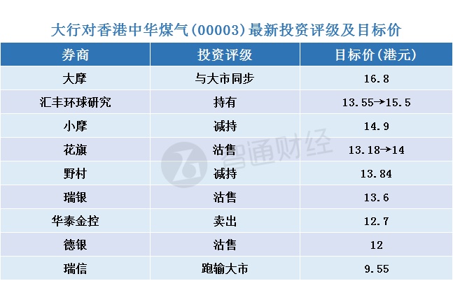 智通财经APP整理,大行对香港中华煤气(00003)最新投资评级及目标价如下: