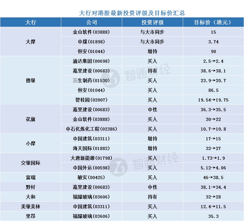 三、大行对香港中华燃气(00003)最新投资评级及目标价
