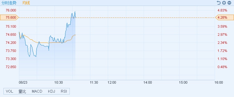 智通财经APP获悉,药明生物(02269)绩后股价连续四个交易日上涨,涨逾两成。截至11时04分,涨4.28%,报价75.6港元,成交额1.3亿。