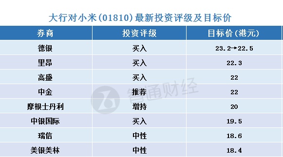 德银发表报告表示,小米集团硬件强劲付运量及平均售价增长令人鼓舞,电视销售较该行预期更佳,确认该行对小米集团成为持续增长家电品牌的看法,手机均价增长显示品牌效应扩大至更广泛消费层,汇率及配件成本压力影响毛利率,但相信公司扩张销售及市占对中期展望更为重要。该行调整目标价,由23.2元降至22.5元,重申“买入”评级。