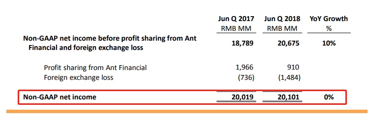 周四美股盘前,阿里巴巴发布了截至6月30日的一季报(2019财年第一季度),营收达809亿元人民币,同比增长61%,连续6个季度保持超过55%的高速增长。非美国通用会计准则下,盈利201亿元,增长为0%。第一财季调整后每股收益8.04元人民币,市场预期8.19元人民币。阿里巴巴盘前股价涨近3%。