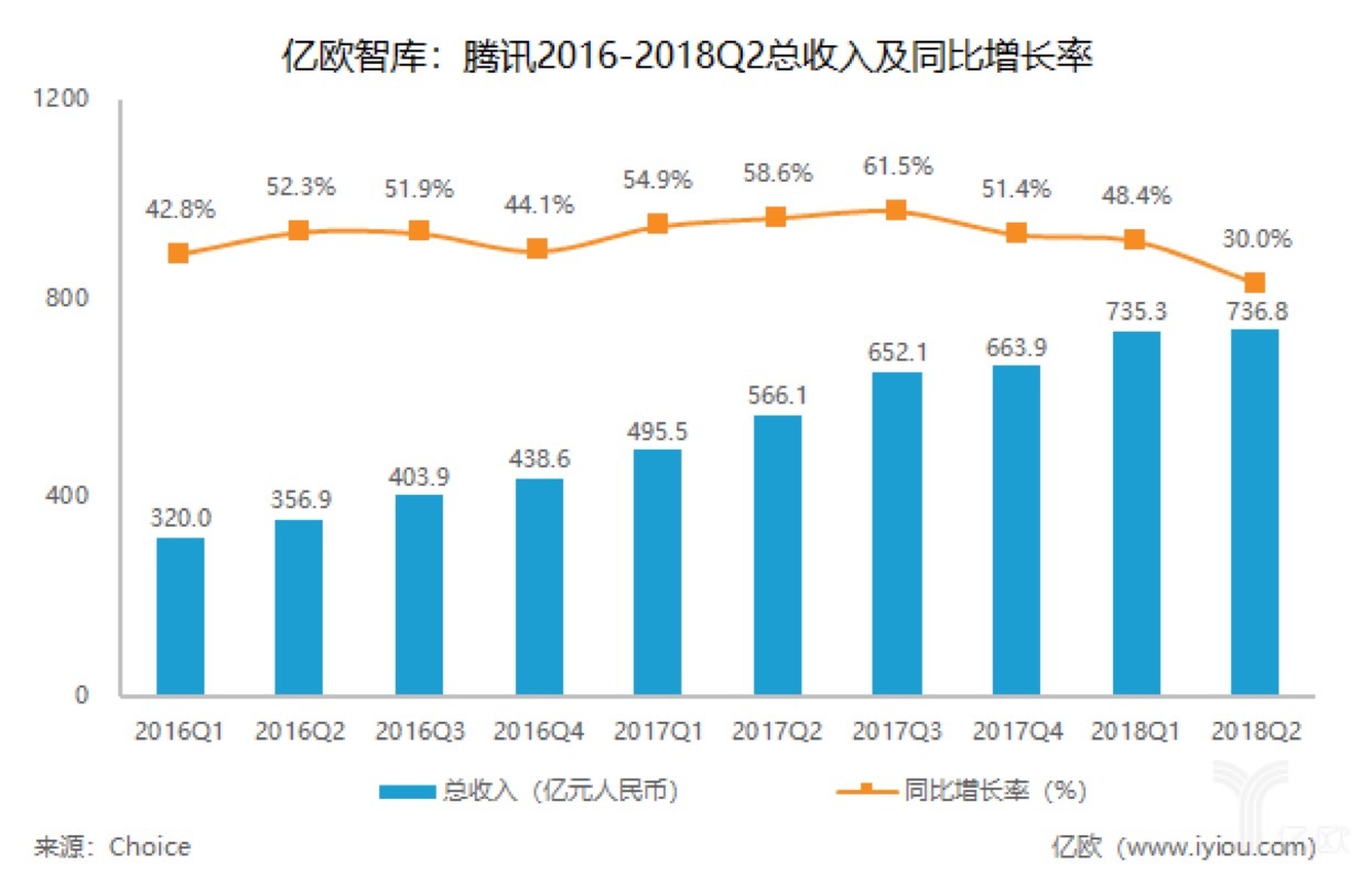 8月15日,腾讯公布的中期业绩低于预期:Q2营收736.75亿元,同比增长30%。净利润178.67亿元,同比下降2%。