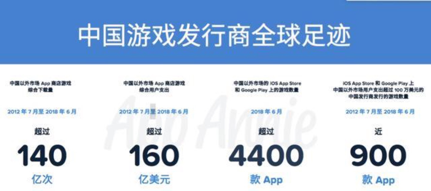 数据平台 App Annie 发布了 2018 年上半年中国移动游戏出海报告,为中国游戏发行商的全球表现描绘了一份成绩单:中国移动游戏发行商的海外 iOS 及 Google Play 综合收入在 2018 年上半年较 2017 年同一时间段增长超过了 40%; 243 款中国移动游戏在海外市场收入破100万美元;中国移动游戏发行商收入主要来自日本、韩国、德国等成熟市场国家和地区;海外玩家在中国移动游戏上的总支出也已经超过了 160 亿美元。