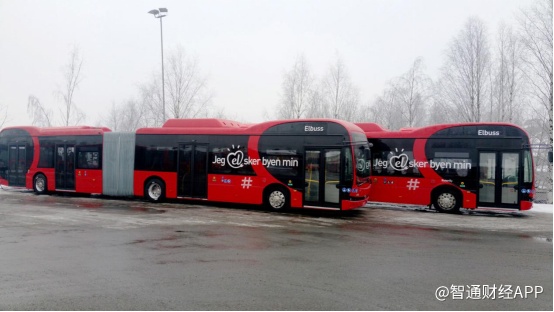 在挪威奥斯陆运营的比亚迪18米纯电动铰接大巴
