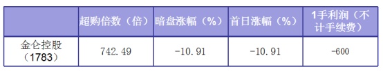 超购724倍的金仑控股(1783)周二暗盘高开低走跌10.91%。周三上市直接低开11.82%;收盘的时候跟暗盘跌幅一样,所有人都被套住了。第二天高开低走,再次暴跌12.24%,投资者损失惨重。