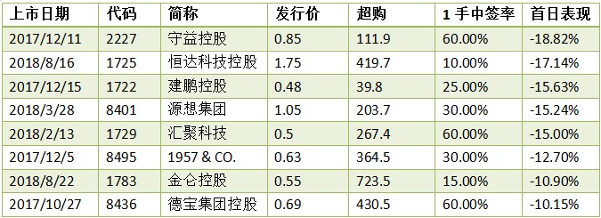 由于8月份新股比较少,除了下周一上市的衍汇亚洲(8210)外,下周没有其他股票上市。