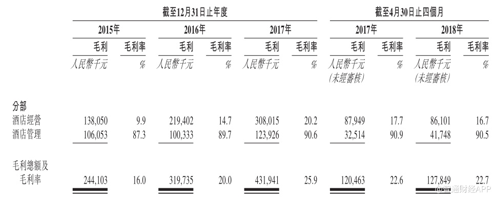 截至2015年度、2016年度及2017年度公司毛利分别为2.44亿元、3.19亿元、4.32亿元,对应毛利率为16%、20%,25.9%。截至2017年4月30日止4个月及截至2018年4月30日止4个月,毛利分别约为1.2亿元、1.28亿元,对应毛利率为22.6%、22.7%。