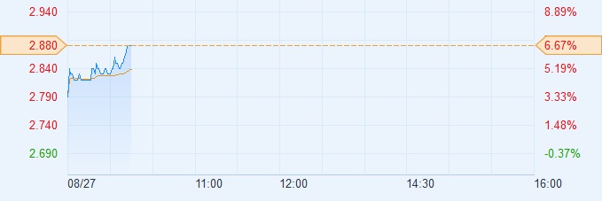 智通财经APP获悉,紫金矿业(02899)上半年净利同比增长67.82%,今日大幅上涨。截至10:12,涨6.67%,报2.88港元,成交额3350万港元。