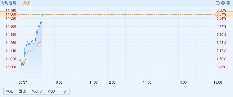 智通财经APP获悉,5G板块持续活跃,中兴通讯(00763)AH同步涨逾6%,截至10时08分,涨6.07%,报价14.68港元,成交额8633.45万。