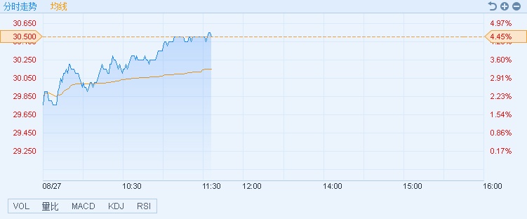 智通财经APP获悉,招商银行(03968)上周五(8月24日)公布中期业绩,股东应占净利同比增14%至447.56亿元人民币,截至11时35分,涨4.45%,报价30.5港元,成交额5.78亿。