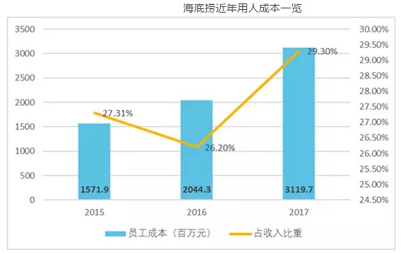 海底捞有着大量餐厅一线员工:在它共计50299名的员工中,餐厅员工达49162人。