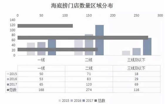 在过去3年,海底捞新增门店数量已超越之前20年的门店总数。2016年的176家扩张到2017年273家。甚至,海底捞计划在2018年新增180-220家门店,即每两天就要开设一家新店。