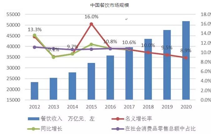 中国人也许天生就格外喜好美食,给了餐饮市场肥沃的土壤。据统计,2017年中国餐饮行业收入超过3.9万亿元,到2020年,餐饮市场很可能有超过5万亿元规模。
