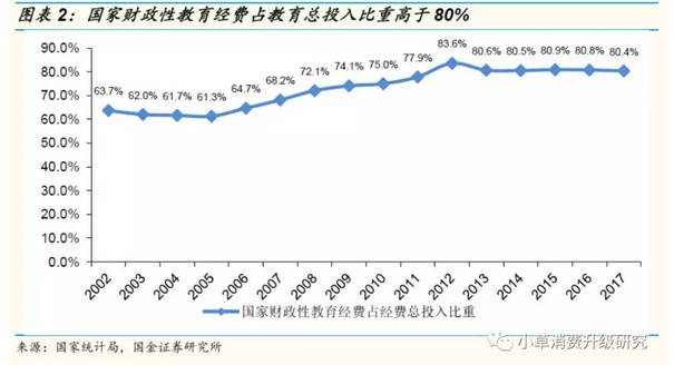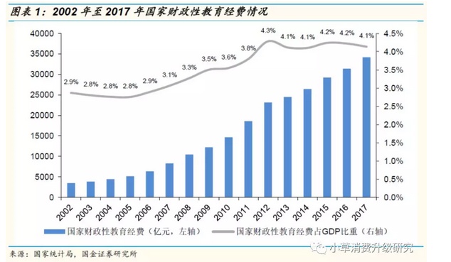 我国一直并长期重视教育工作,并致力于提高教育经费使用效益,未来将进一步提高教育经费支出投入。自2012年起,国家财政性教育经费支出占国内生产总值比例达到并持续保持在4%以上。全国教育经费总投入包括国家财政性教育经费支出,主要为公共财政预算安排的教育经费、政府性基金预算安排的教育经费、企业办学中的企业拨款以及校办产业和社会服务收入用于教育的经费等。教育部答记者问中提到,“最终,要保证国家财政性教育经费支出占国内生产总值比例一般不低于4%,确保一般公共预算教育支出逐年只增不减,确保按在校学生人数平均的一般公共预算教育支出逐年只增不减。”国金点评①:我们认为,这个4%的数据与前期实际投入是相近的,政府对于教育的整体财政投入水平是保持稳定的。