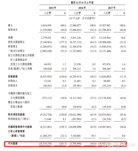 收入快速增长的同时,公司的亏损正在逐渐收窄。公司2015年亏损59亿元,2016年亏损54亿元,2017年亏损28亿元,离扭亏为盈越来越近。