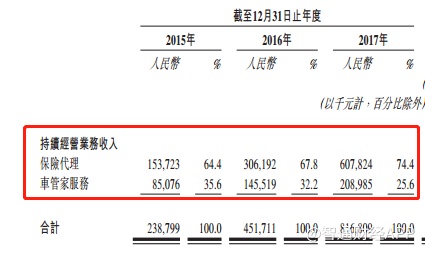 智通财经APP观察到,目前公司业务主要分为两大板块:保险代理及车管家服务。2015-2017年,公司保代业务的收入占比逐年升高,至2017年。其占比已达74.4%,成为目前公司最核心的业务。