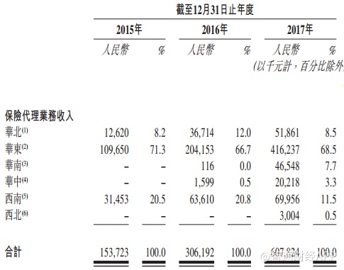 从目前公司保代业务覆盖地域的收入情况来看,公司的重心地区华东在2015-2017年保代收入从1.1亿元增至4.2亿元,复合增长率高达95.4%。