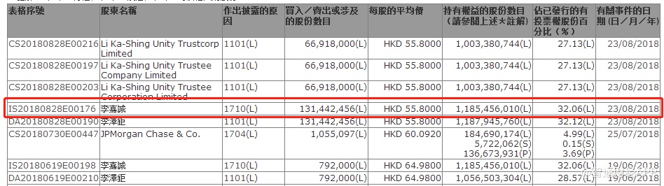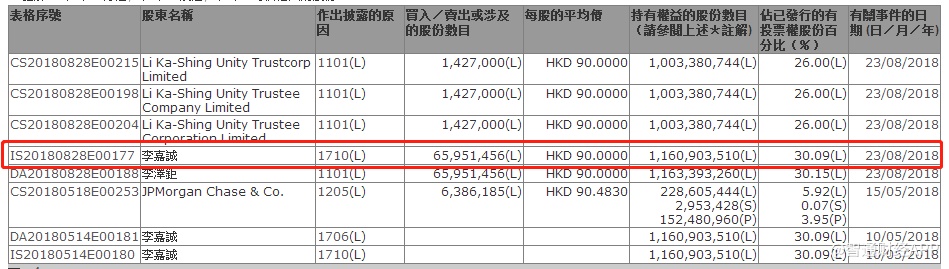 智通财经APP发现,港交所权益披露显示,李嘉诚于8月23日将个人持有的近6600万股长和,以每股90港元的价格,注入李嘉诚名下的信托基金,涉资约59.36亿港元。长实方面,李嘉诚则将个人持有约1.31亿股长实,以每股55.8港元价格,注入信托基金,总值73.34亿港元。