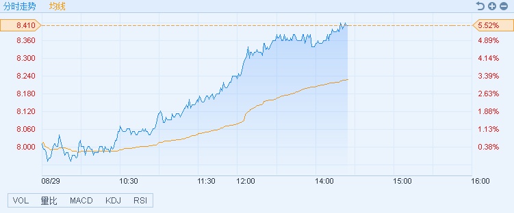 智通财经APP获悉,广汽集团(02238)于上周五(8月24日)公布中期业绩,净利润约人民币69.13亿元同比增10.31%。绩后连续三日累涨约16%,截至14时23分,涨5.52%,报价8.41港元,成交额3.42亿。