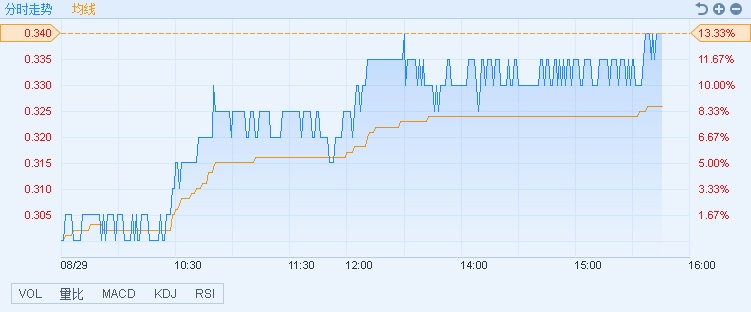 智通财经APP获悉,恒腾网络(00136)受恒大系强势影响,股价大涨,截至15时45分,涨13.33%,报价0.34港元,成交额2.94亿。