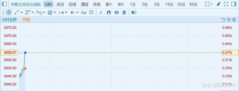 智通财经APP获悉,周三,美股基本平开,其中纳斯达克指数盘初高走,升穿8046.315点,创纪录新高。截至发稿,纳指报8059.57,涨30点或0.37%。