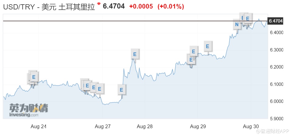 智通财经APP获悉,8月份土耳其经济信心指数从7月份的92.2下降到了83.9,创下自2009年3月份以来的最低水平。数据公布后里拉再度承压,截至发稿兑美元汇率跌至6.4704,创下自8月15日以来的最低水平。