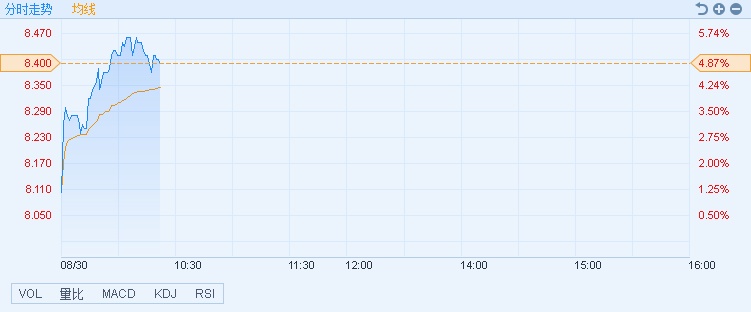 智通财经APP获悉,昆仑能源(00135)昨日公布中期业绩,绩后获多家大行唱好,早盘续涨,截至10时21分,涨4.87%,报价8.4元,成交额2.28亿。