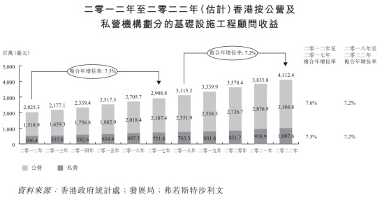 4、从深圳湾去香港的沿途,沟渠、护坡工地比较多。受益于基建的推动,香港建筑工程顾问市场近几年稳定增长,7.5%左右的复合年增长率,不算低;7分