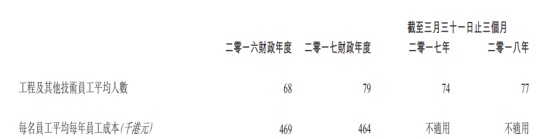 6、人力成本是公司主要开支,占公司总成本的70%以上,招股书披露,2017年合计79名员工,平均每人年成本46.4万元,折算3.86万元/月。大致算了下,工资水平比较稳定,在3.9万左右轻微波动;7分