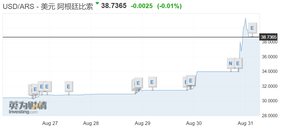 而30日晚间,阿根廷央行加息1500个基点,由45%升至60%,还将私人银行存款准备金率上调了五个百分点,并表示,今年12月以前都不会降息。31日凌晨,该行业又宣布卖出3.3亿美元外储,为本周第三次抛售美元干预汇市。此后阿根廷比索跌幅一度扩大至20%,最终收跌10%,刷新盘中和收盘最低纪录。