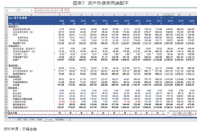第二,为了准确预测作为估值基础的业绩科目,一般需要对三大报表各主要科目进行全面预测、相互钩稽。这是绝对估值中最复杂的一步,需要对利润表和资产负债表的科目逐项预测[2],最终钩稽完成的表现是预测年度的资产负债表两端均配平。三大报表本身的钩稽关系构建了一个完整的“财务生态系统”,保证了预测出的业绩科目符合公司的业务逻辑,否则会造成预测年度的资产负债表两端不平衡,或虽然平衡但某些其他会计科目预测值异常。