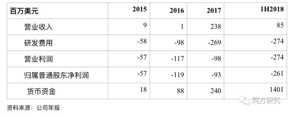 公司在研产品线包括新型口服小分子类和单克隆抗体类抗癌药物,同时聚焦于抗癌治疗的药物组合方案,目前进入临床后期的产品包括BTK抑制剂BGB-3111,PD-1 BGB-A317以及PARP抑制剂BGB-290。2017年,公司与新基公司(Celgene)达成战略合作,获得新基授予的独家经销,可在中国独家销售Abraxane白蛋白紫杉醇、瑞复美(来那度胺胶囊)和维达莎(注射用阿扎胞苷),改变了公司过去无收入的情形。截至2017年12月31日公司的收入为2.38亿美元,2016年同期分别为107万美元,该增长来源于与新基公司合作带来的产品收入和合作收入。