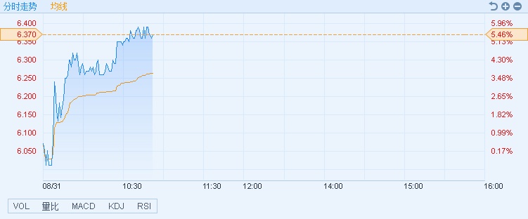 智通财经APP获悉,5G板块持续活跃,中国通信服务(00552)昨日公布中期业绩,净利润同比增长8.6%至15.95亿元人民币,早盘股价拉升,截至10时51分,涨5.46%,报价6.37港元,成交额4243万。