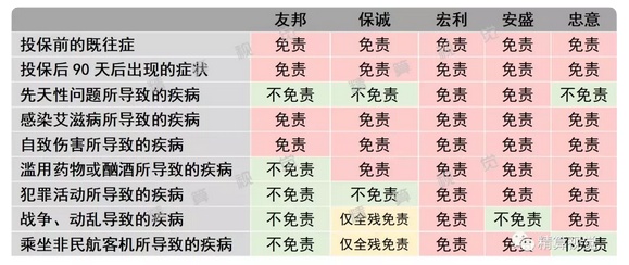 香港五款重疾险的免责条款