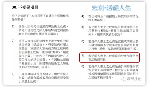 导读:来看看香港四大类保险产品的免责条款。