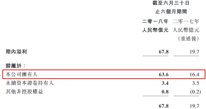 基于2017年的业绩高点之上,融创2018年中期的归母净利和核心净利都分别大幅增长近4倍。