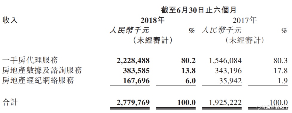 截止2018年6月30日止6个月,自和公司股东有关的26家开发商产生的一手房代理服务收入为12.107亿元,占期间一手房代理服务收入的54.3%。