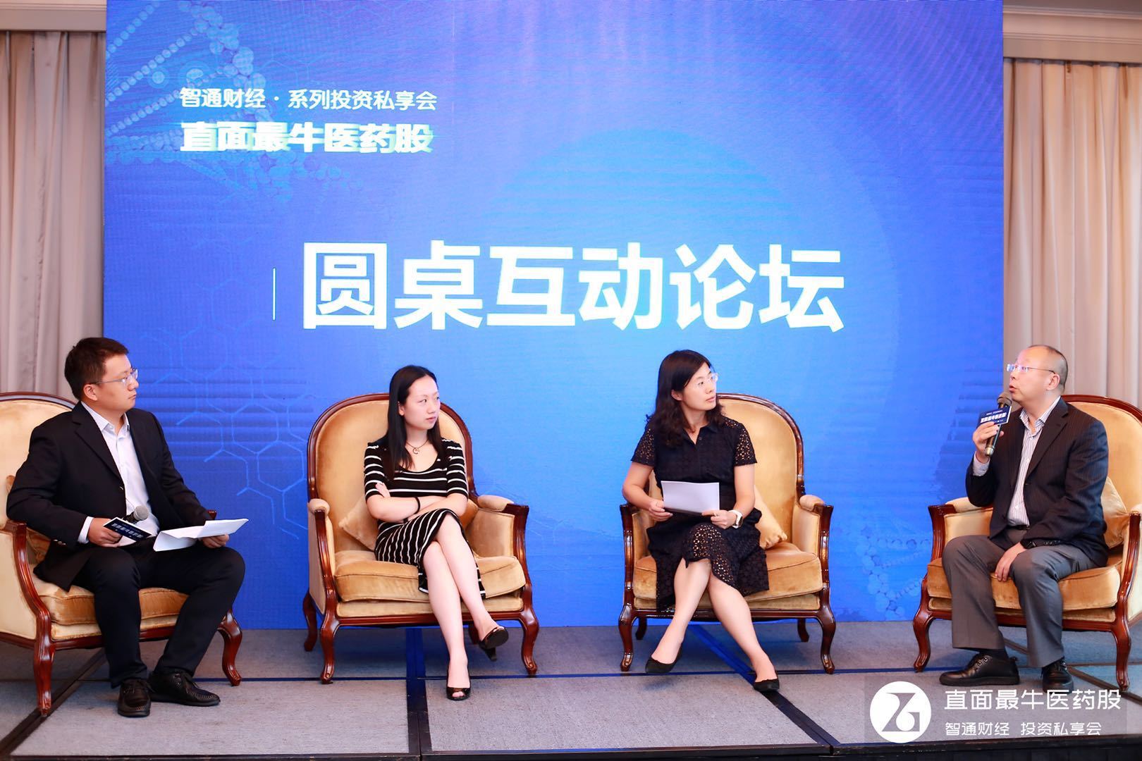 智通财经APP获悉,2018年8月31日,由智通财经主办,云锋金融作为战略合作的智通财经·系列投资私享会“直面最牛医药股”在深圳东海朗庭酒店召开。在圆桌论坛环节,云锋基金(刘勍)作为主持人,石药集团(裘虹)、远大医药(王科)以及华夏基金(魏晓鹏)作为特邀嘉宾,对医药行业所面临的各种问题进行了精彩的讨论。