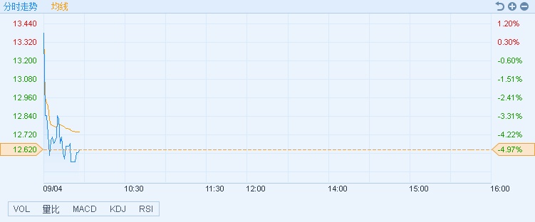 截至11时16分,中国重汽(03808)跌7.08%,报价12.34港元,成交额7636.45万。