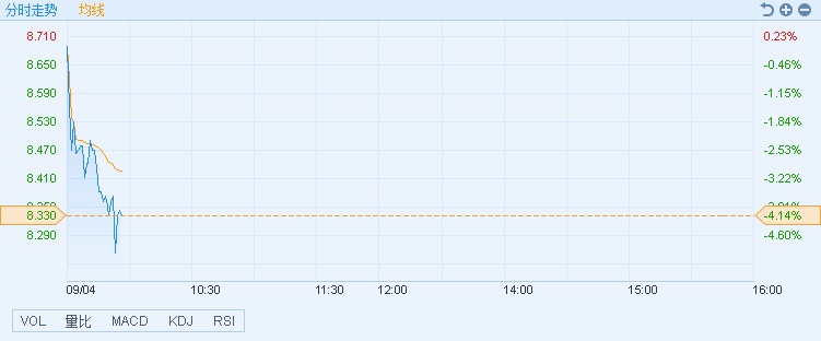 截至11时17分,潍柴动力(02338)跌4.14%,报价8.26港元,成交额9590.57万。
