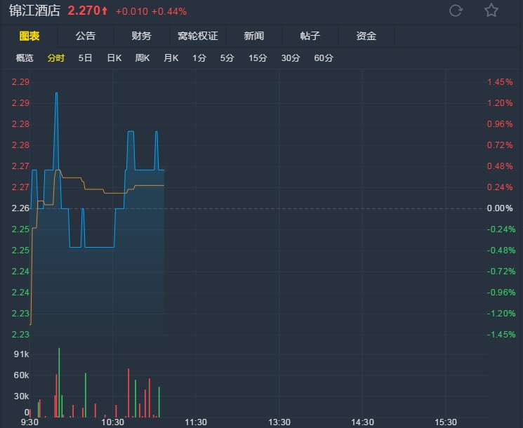 截至发稿,锦江酒店(02006)股价报2.27港元,升0.44%。