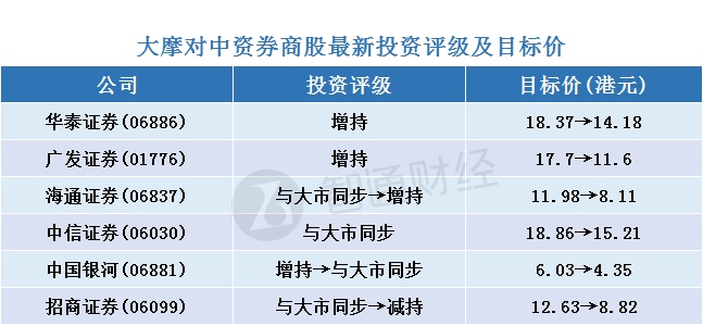 智通财经APP整理,大摩对中资券商股最新投资评级及目标价如下: