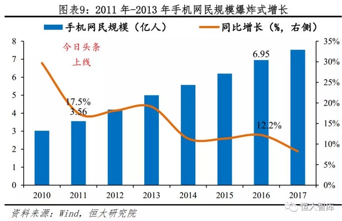 2012年8月上线的今日头条APP踩准了移动互联网大规模普及的红利期,技术周期的转变为流量聚集提供了外部环境的支持: