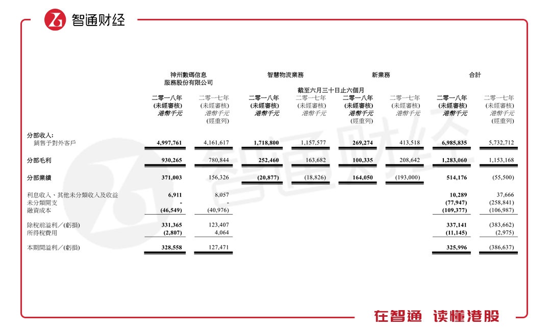 8月29日晚,向大数据服务商转型的神州控股(00861)披露了2018年中期业绩。上半年,公司实现收入69.85亿港元(单位下同),同比增长21.86%;毛利为12.83亿元,较上财年同比增长11.26%,毛利率为18.37%;净利润1.37亿元,业绩较去年同期有明显的改善。