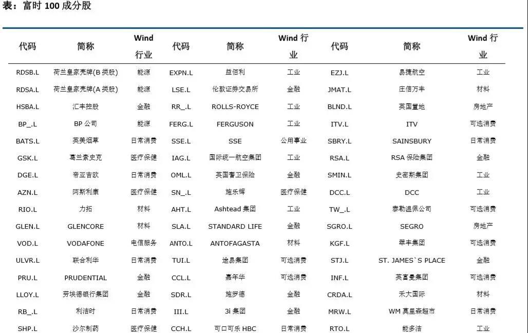 我们认为,英方可能试点的企业将主要以具有代表性的富时 100 指数成分公司为主,建议关注行业龙头, 包括荷兰壳牌(能源)、汇丰控股(银行)、英美烟草(烟草)、帝亚吉欧(日用)、阿斯利康(制药)、联合利华 (日用)等。
