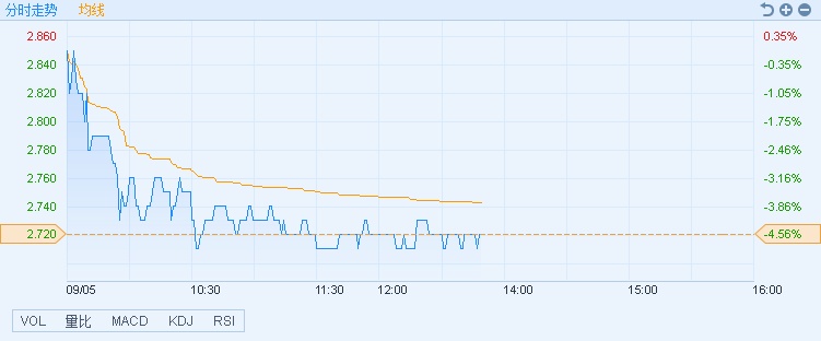 智通财经APP获悉,金隅集团(02009)遭京国发基金减持6263.3万股,股价下挫,截至13时48分,跌4.56%,报价2.72港元,成交额6915.21万。